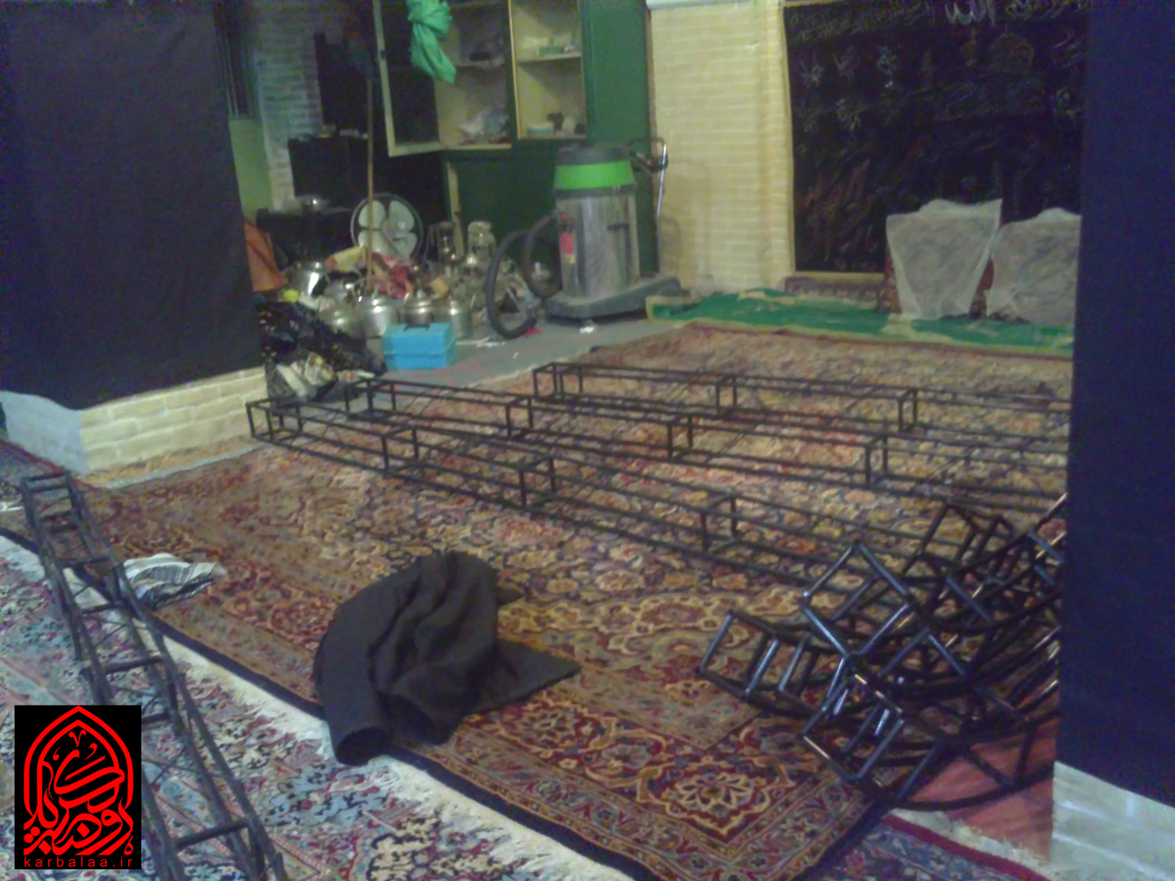 نصف مسجد رو سیاه پوش کنیم و خیمه بزنیم .